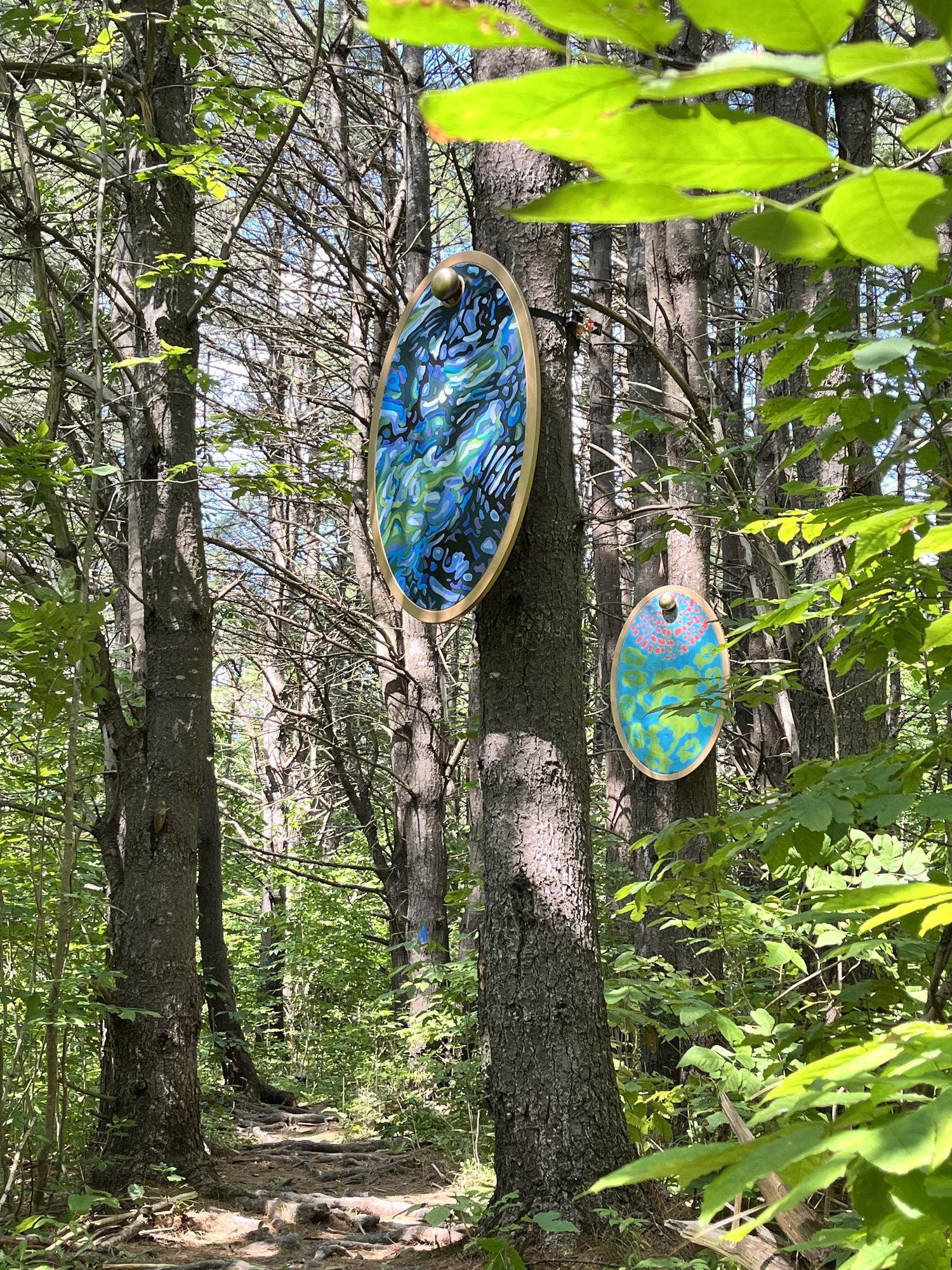 Artists Peter Walls and Allegra Kuhn generously offered toreinstall the “jewelry for the trees” at Stover Preserve in Belfast from their 2023 Art Gond Wild installationas a fundraiser for future Art Gone Wild Residencies!
