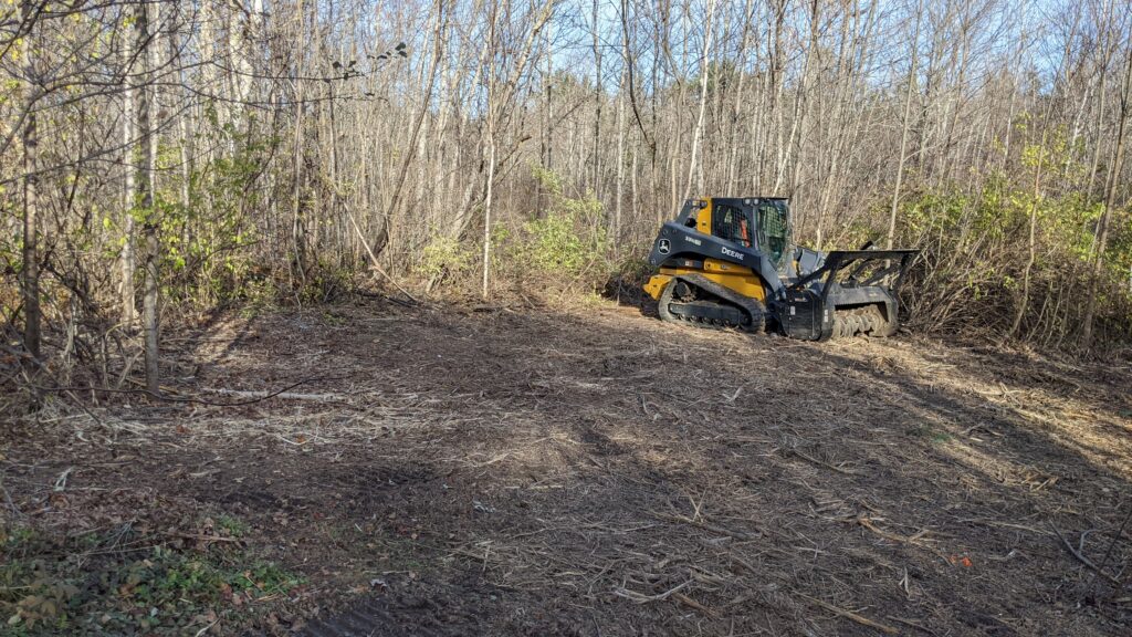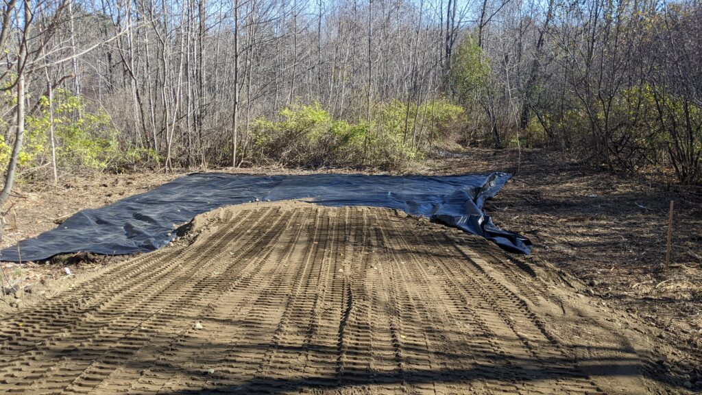 Big thanks to earthwork and landscaping contractor Garret Cross for his awesome work. The area around the lot was filled with invasive honeysuckle and multiflora rose, and Garret did an awesome job removing those harmful plants before building the lot. Thanks to volunteers Bob Olfenbuttel, Steve Bird, and Dan Reeve for there help installing the new kiosk and roadside sign.