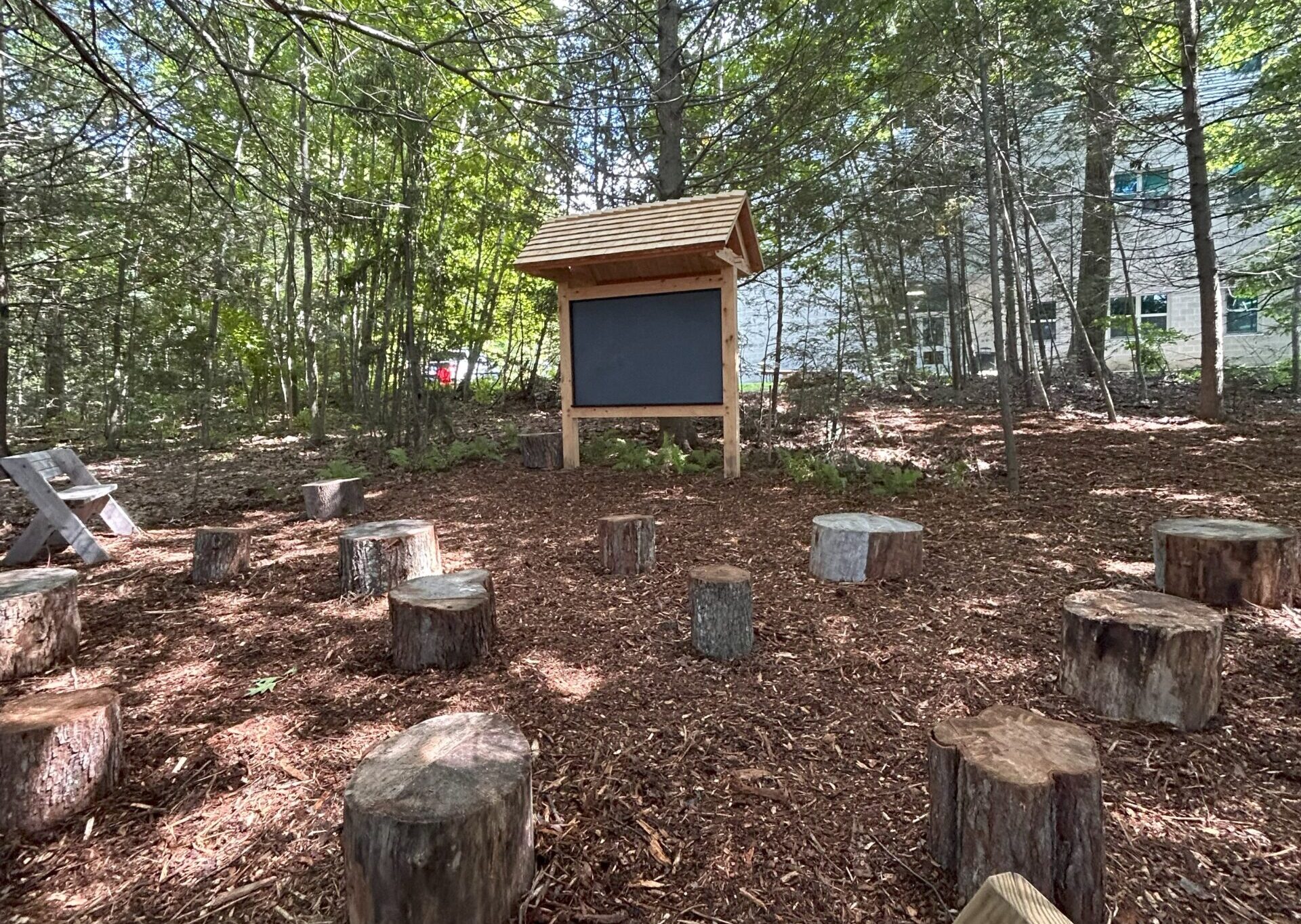 The Land Trust and the CRMS faculty worked together to map out an educational space that emphasizes the beauty of their landscape and offers a location to teach all subjects, providing the potential for students to be outside multiple times throughout the day. Since the classroom is nestled in a hemlock grove, students can experience the mental health and emotional regulation benefits of being immersed in a biodiverse space, while continuing to learn.