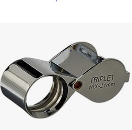 To do this exploration on your own, you’ll need a hand lens, also called a jeweler’s loupe. The ideal magnification is 10x – any more makes the lens more difficult to use. The word “Triplet” in the photo means that 3 lenses are combined to reduce distortion. Lenses such as these cost anywhere from about $13 to $40, and the less expensive ones are usually fine. Don’t get one with a light – the battery compartment is not sealed and corrodes easily. It’s also helpful to have a lanyard to carry the lens around your neck.