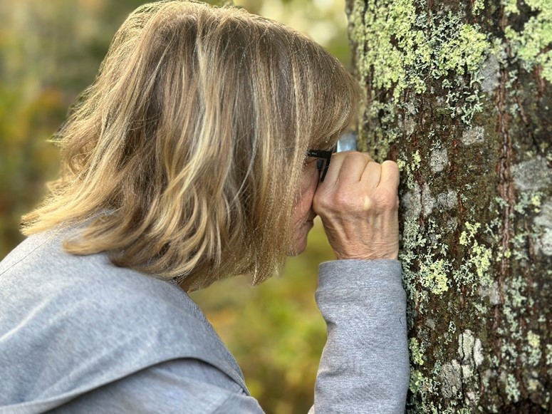 To use the hand lens, bring the lens close to your eye and bring your head close to the bark until the object comes into focus. It takes some practice, and a steady hand helps.