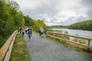 SCENIC RIVER WALK, WHEELCHAIR ACCESSIBLE, CLOSE TO TOWN The old Belfast-Moosehead Lake Railroad corridor along the Passagassawakeag River was transformed into a level, packed granite stone trail suitable for foot, ski, bike, and wheelchair compatible recreation. The trail begins at the Armistice footbridge on the waterfront, and travels along the river to the City Point Railroad Museum, then connects to the 47-mile Hills to Sea Trail to Unity.