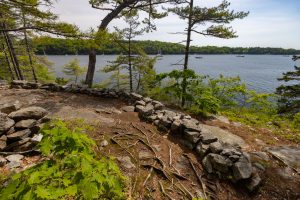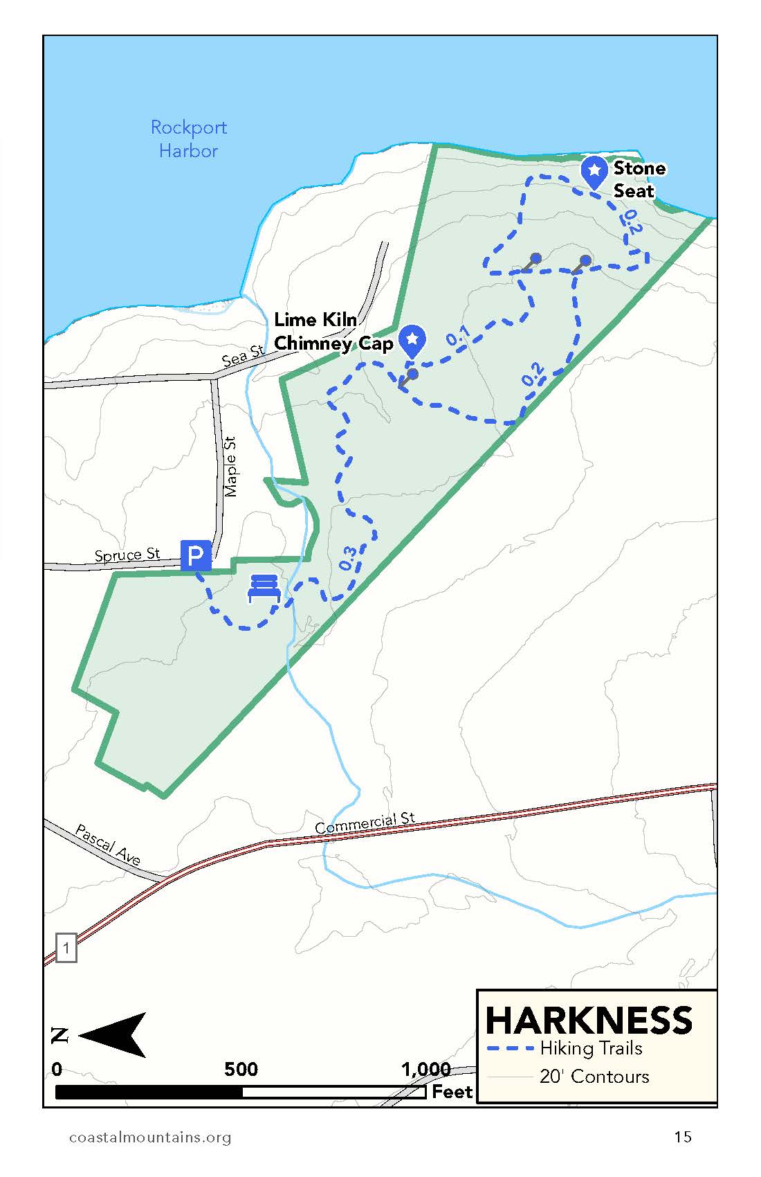 - Stone seat that overlooks Rockport Harbor - This preserve’s last full-sized American chestnut trees died in 2010, but stump sprouts live on - Lime kiln chimney cap, a relic of Rockport Harbor’s lime kilns
