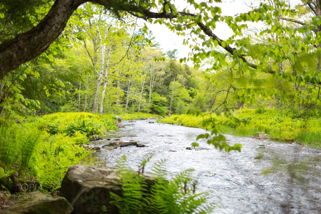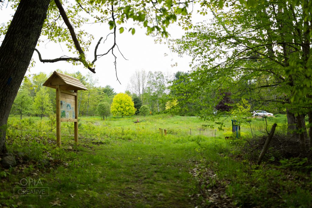 Osprey, bald eagles and belted kingfishers flying along the river Grassland nesting birds and monarch butterflies Wolf trees, apple trees, and old rock walls surrounding the fields