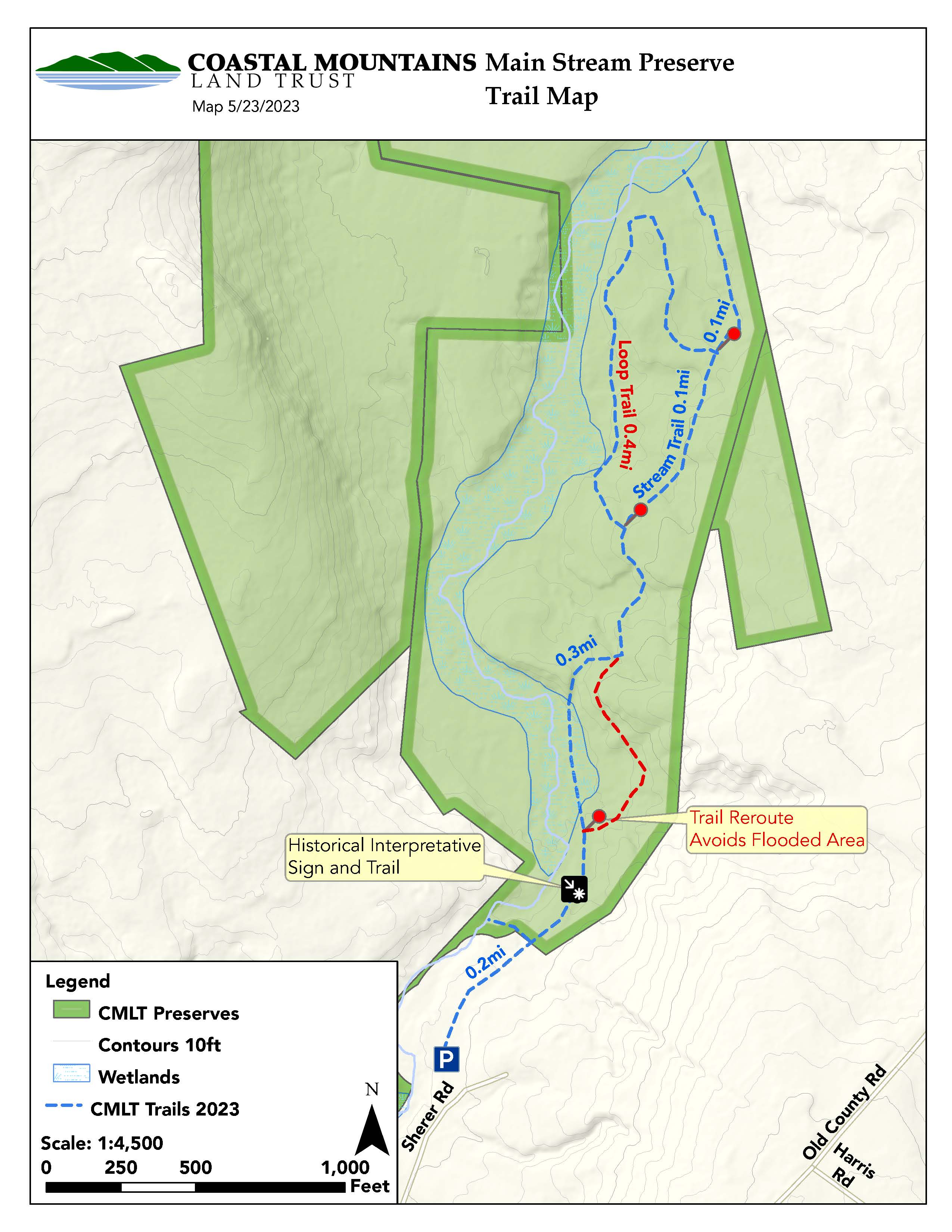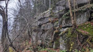 RIVER WALK, FIR FOREST, OLD SETTLEMENTS This trail begins on a discontinued road and meanders through riparian habitat, dense fir forests, black cherry floodplains, grassy fields, and hemlock groves. Look out for woodcock, partridge, deer, coyotes, beaver, and even bears in this remote preserve. Though wild now, the preserve was once the site of several homestead settlements.
