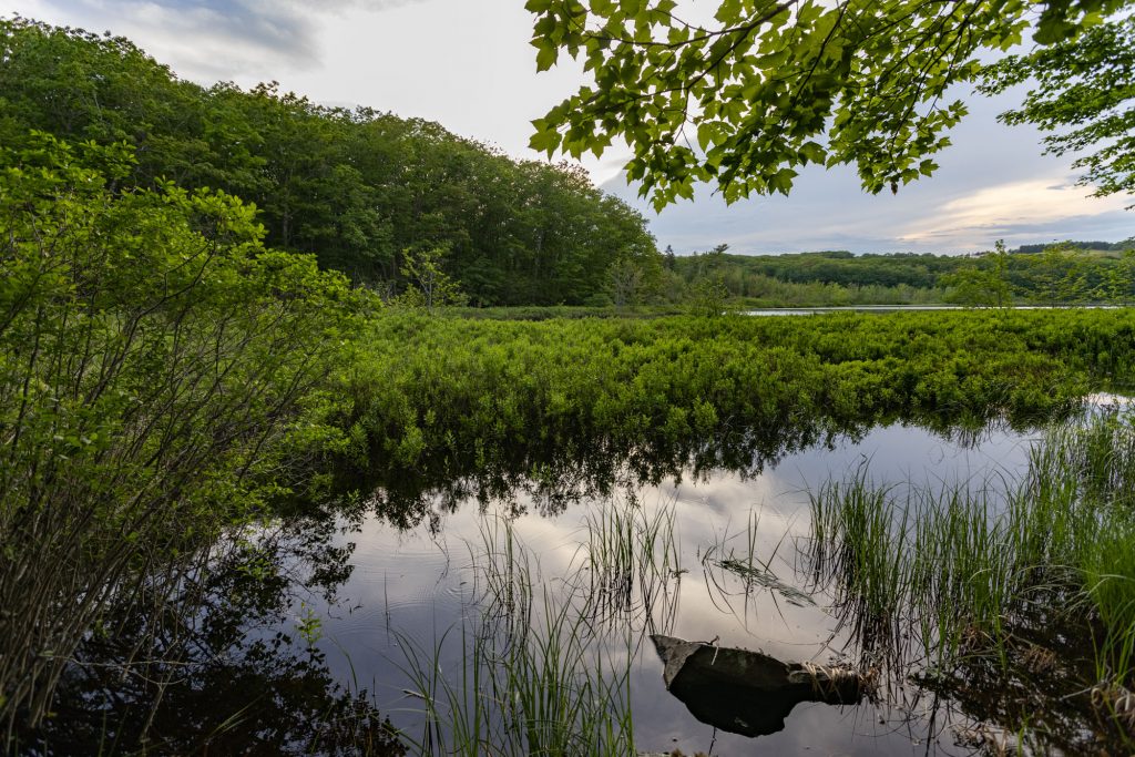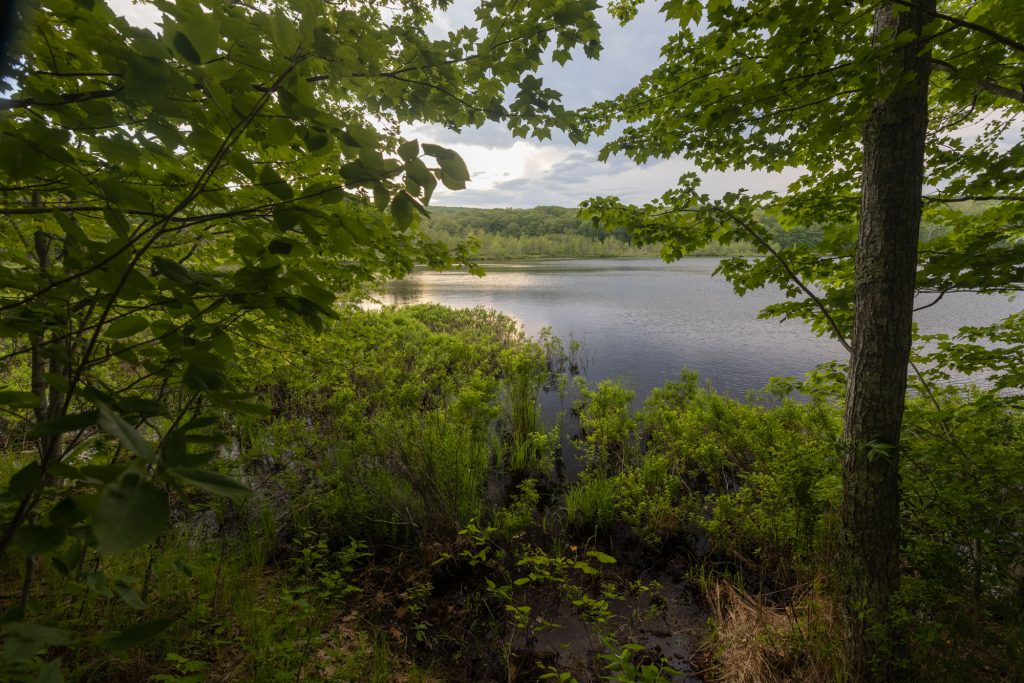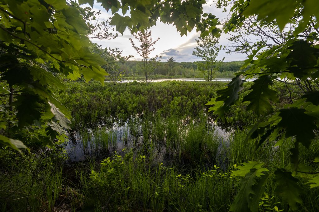 LOOK FOR - Blooming witch hazel flowers in late fall - Significant waterfowl and wading bird habitat along the shore - Range of wetland plants along pond shore