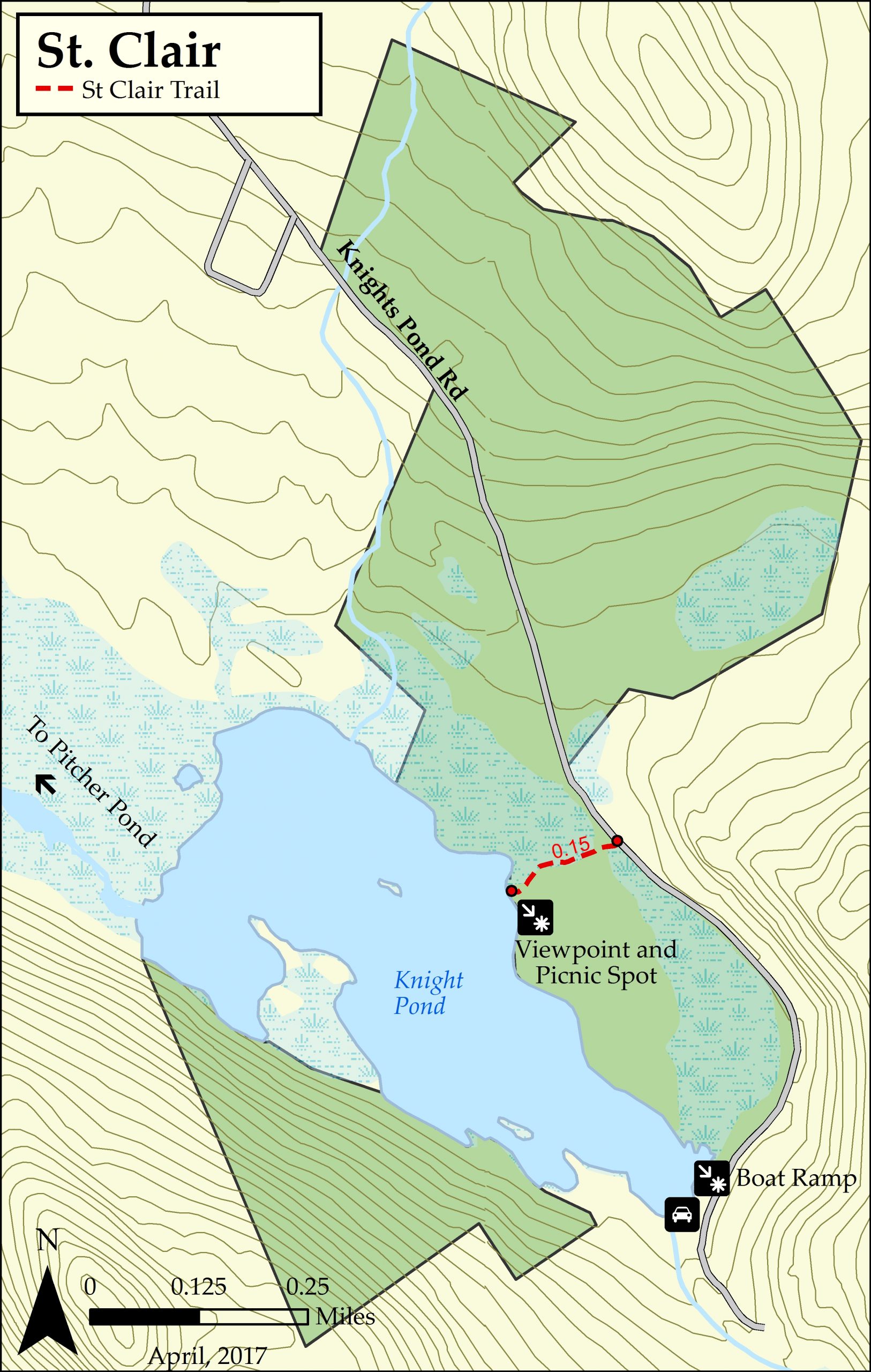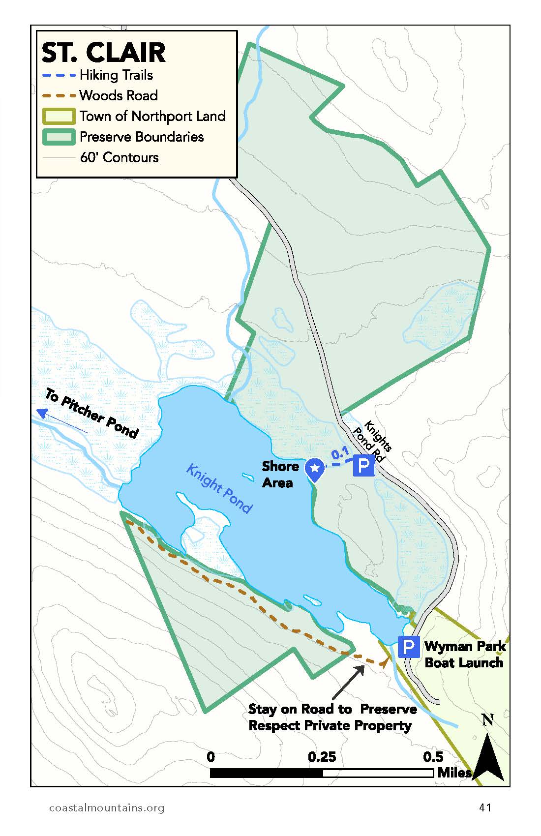 From Lincolnville Beach, take Route 1 north 5.3 miles, then turn left onto Beech Hill Road in Northport for 2.5 miles. Take a left onto Knights Pond Road and park at the end of this dirt road by the pond.